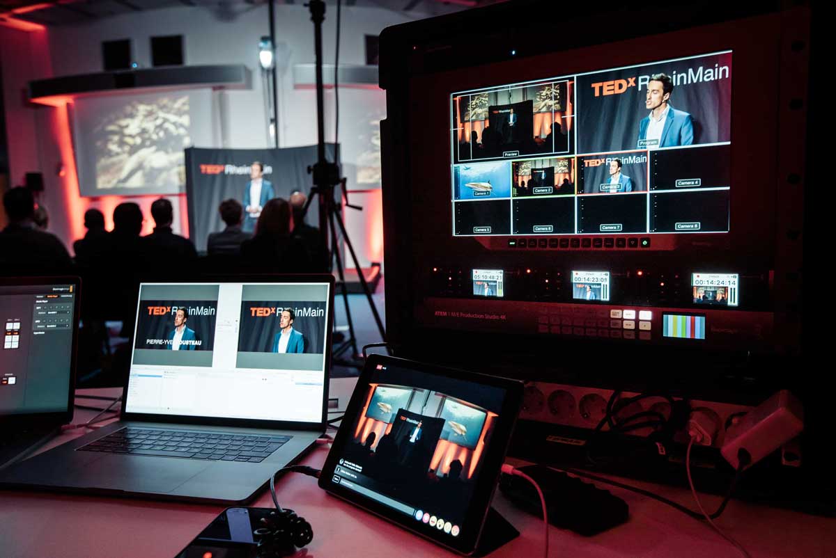 Von der technischen Einrichtung von Licht, Bild und Ton, über die Aufnahmeleitung bis hin zur Live-Regie und Koordination des Online-Streams bieten wir Ihnen einen reibungslosen Ablauf, sodass Sie den Kopf für das Wesentliche frei haben: Ihr Event.